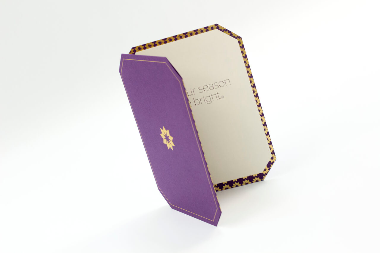 Gold ink and gold foil on a fold in half card. Card and envelope are award winning.